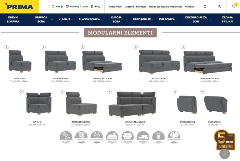 Sve sjedeće garniture snižene su 20%.. Prima commerce je hrvatski proizvođač namještaja, a ujedno i najveći lanac salona namještaja u hrvatskoj. Saloni namještaja, slavonska cesta 6, 43000 bjelovar, mb: Mogućnost kupovine online ili u poslovnicama.24 rate bez kamata!. Osim gotovih sastava, u našoj ponudi su i pojedinačni elementi kojima možete kreirati točno onakvu kombinaciju kakvu ste …